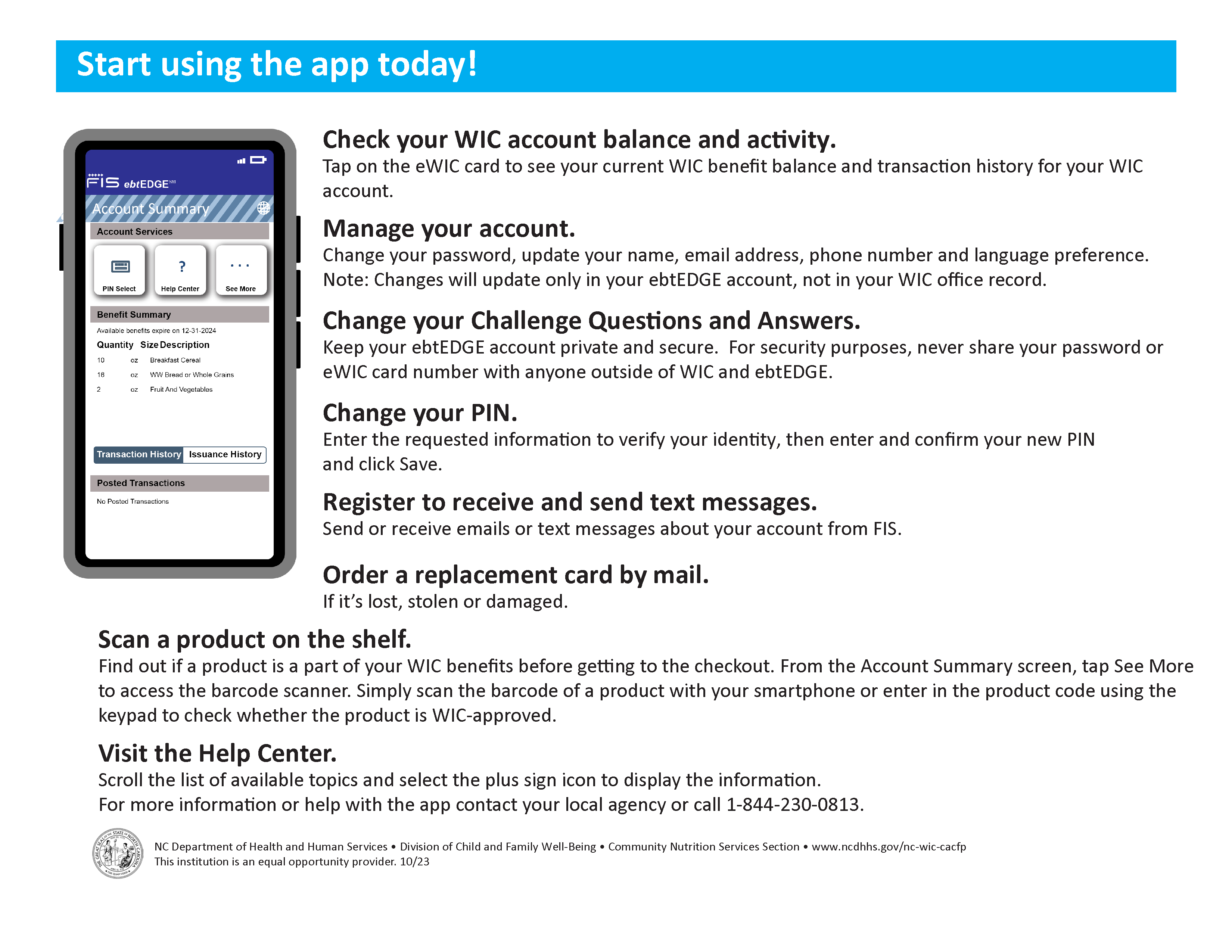 Downloadable PDF about ebtEDGE for NC WIC here. Click here for Spanish.